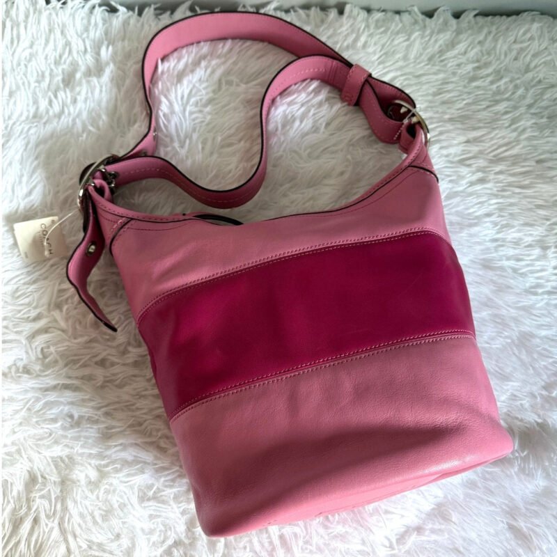 NWT COACH Rugby Stripe Pink Leather Duffle Crossbody Shoulder Bag F13357