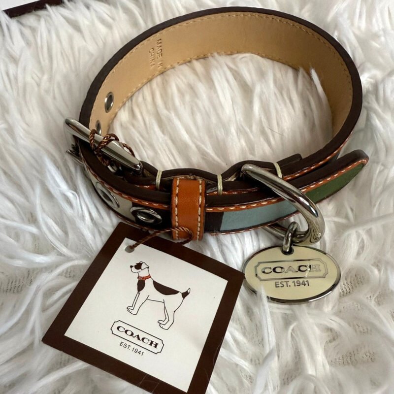 NWB COACH Legacy Stripe Leather Dog Collar XS w COACH Charm Limited Ed Rare