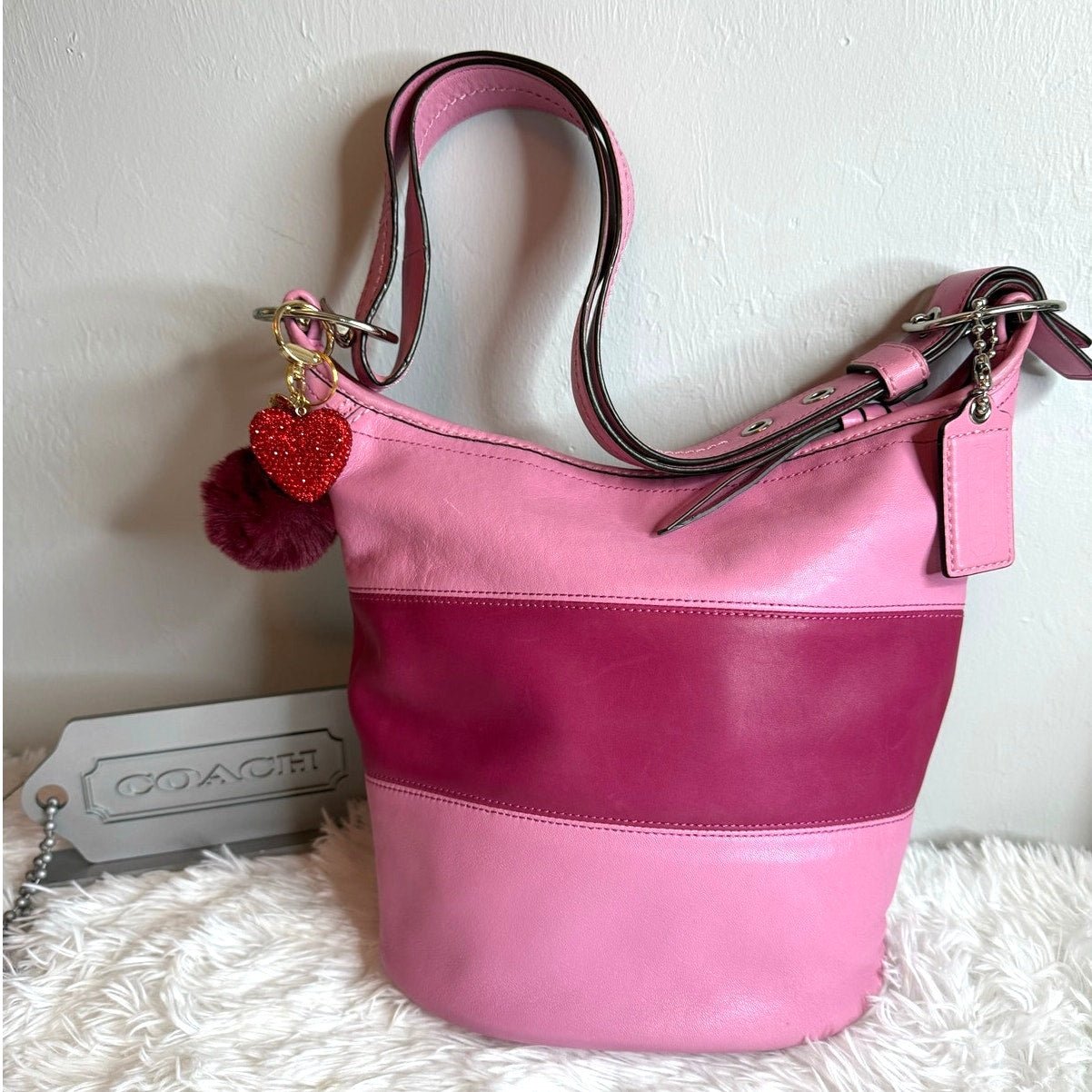 COACH Rugby Stripe Pink Leather Duffle Crossbody Shoulder Bag F13357