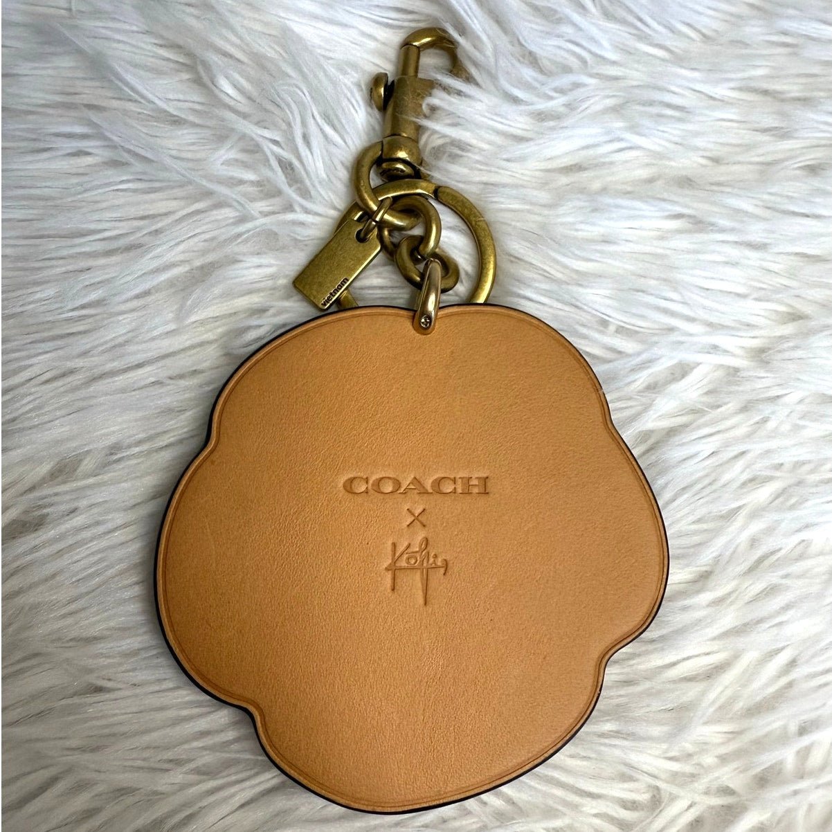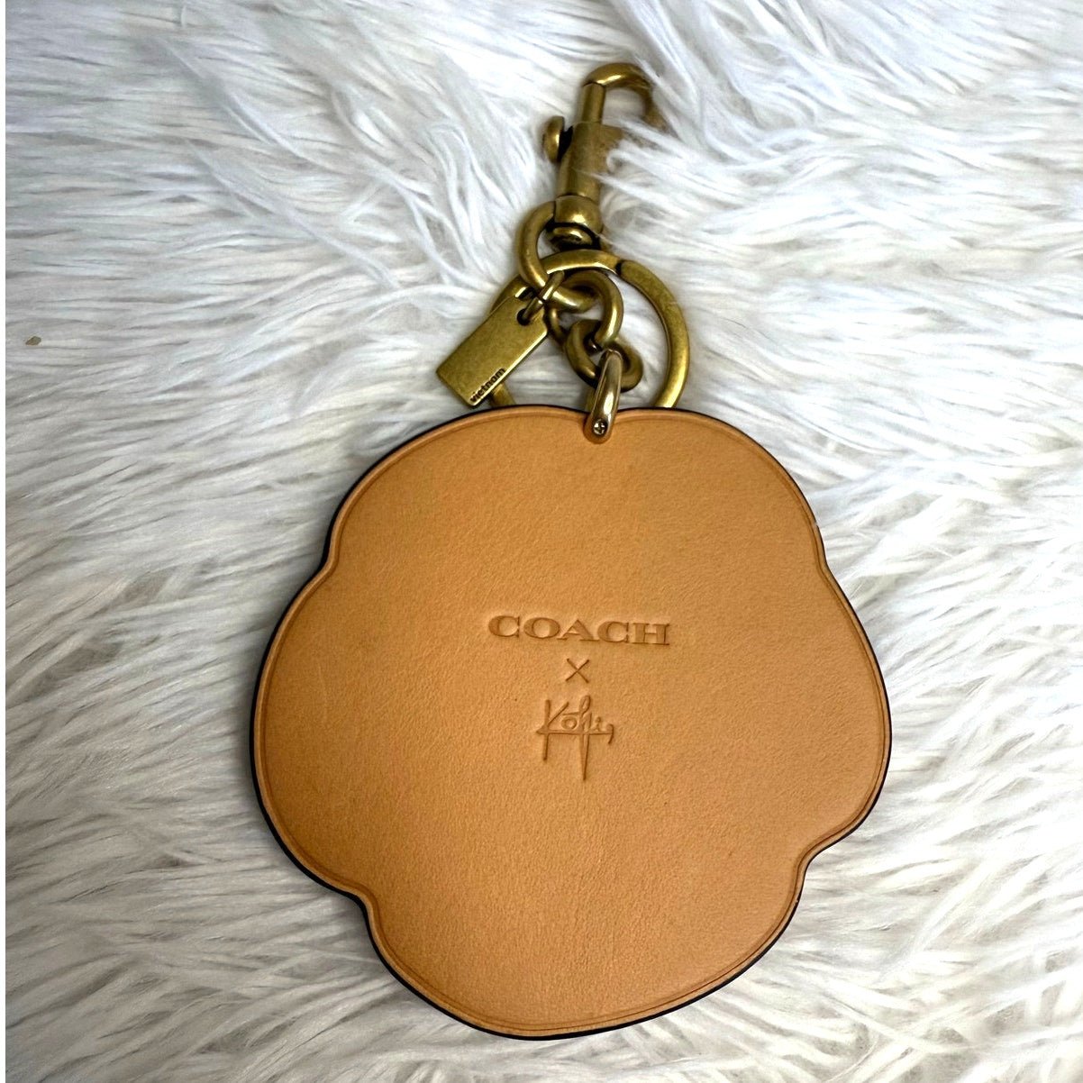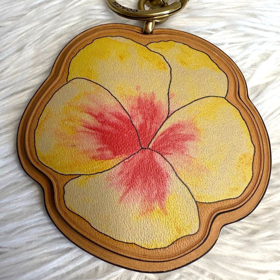 Coach X Koki Leather Hibiscus Flower Key Fob Chain Keychain Bag Charm