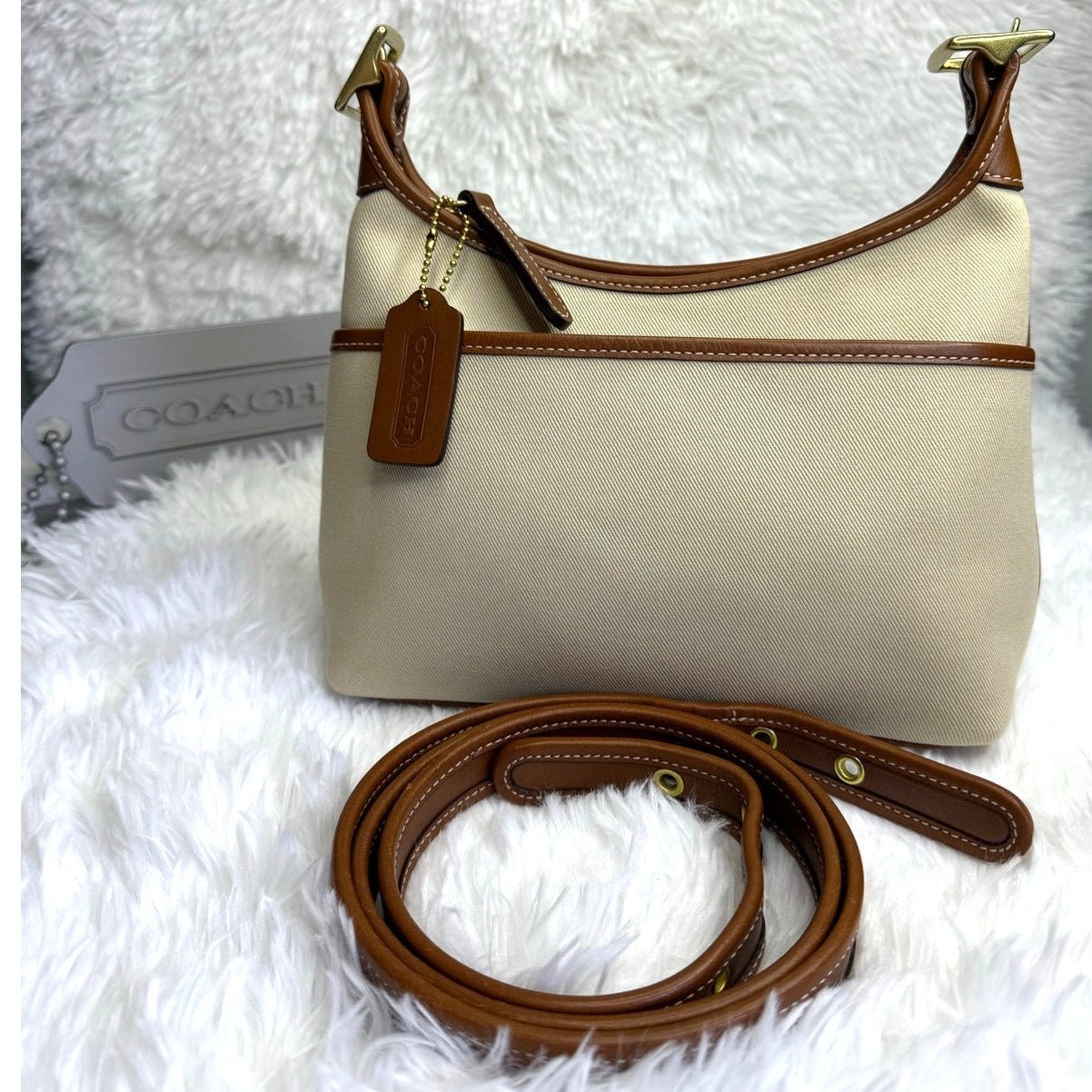 Vintage COACH y2k 2002 9123 Legacy Khaki Leather Canvas Crossbody Shoulder Bag