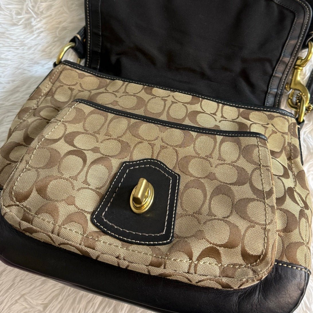 y2k COACH Black Brown Khaki Signature Legacy Flip Turnlock