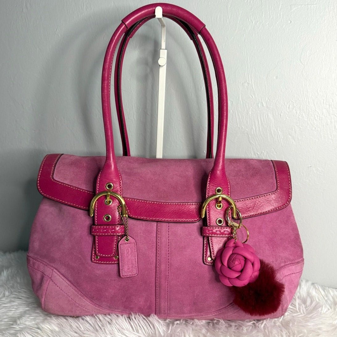 y2k COACH Vintage 2004 Pink Hampton Suede SOHO Flap Satchel