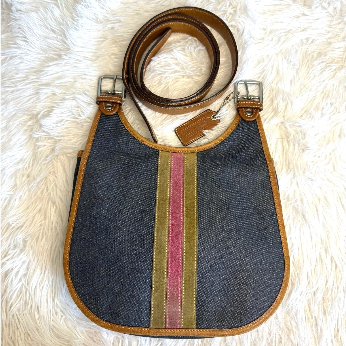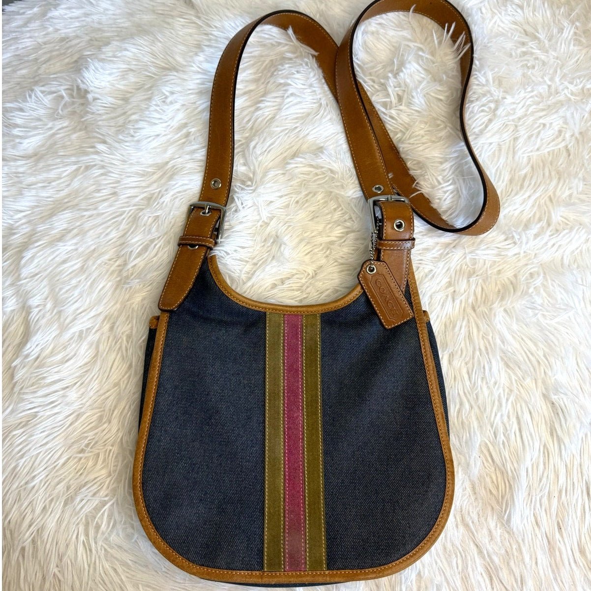 y2k COACH Vintage Denim Suede Striped Crossbody