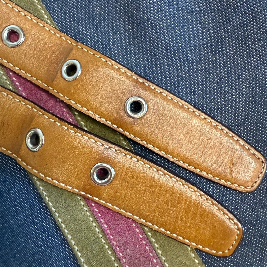 y2k COACH Vintage Denim Suede Striped Crossbody Shoulder Bag